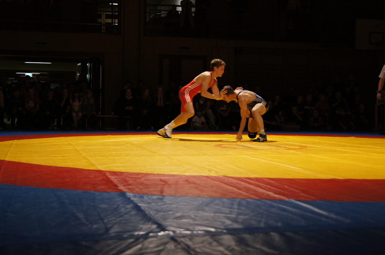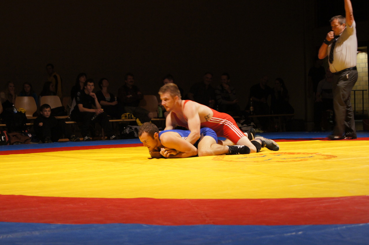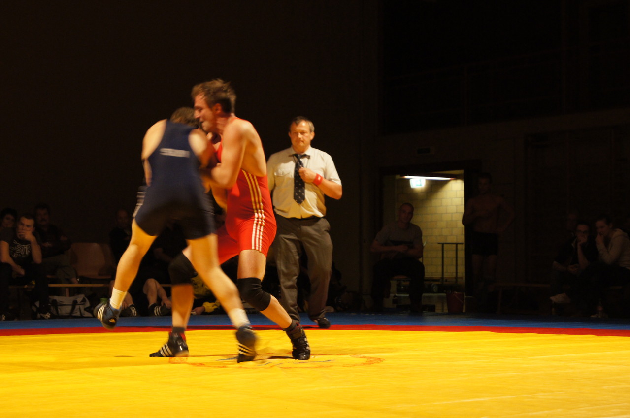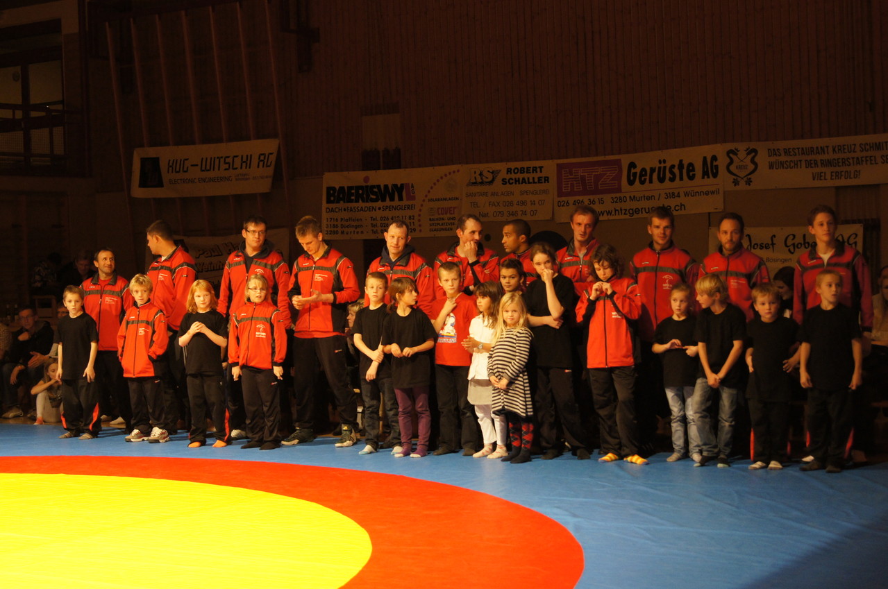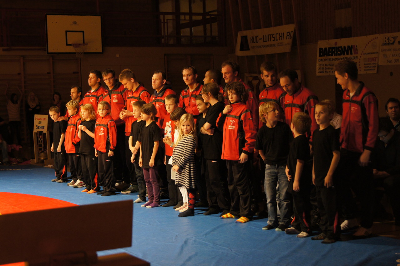 Bis 55kg stand Timon Zeder für die Sensler auf der Matte. Gegen den Routinier Roland Ruch fand er im griechisch-römischen Stil ausgetragenen Kampf kein Rezept und lies sich an der Zone sowie den bekannten Schulterschwüngen seines Gegners erwischen. Michael Nydegger zeigte einen konstanten Kampf gegen Frederic Oulevey. Nachdem Nydegger die erste Runde im Zwiegriff für sich entschied, setzte er in der zweiten mehr Druck auf und erwischte seinen Gegner eiskalt mit einem Brienzer. Mit dem Schultersieg holte er vier Punkte für Sense. Bis 60kg liess lies Pascal Jungo seinem Kontrahenten Olivier Chardonnens keine Chance und schulterte ihn in der ersten Kampfrunde. Da Domdidier bis 96kg keinen Gegner stellte, gewann Urs Felber den Kampf Forfait. Im letzten Kampf vor der Pause lieferten sich Ruedi Zenger und Xavier Eggertswyler einen heiss umkämpften Kampf. Eggertswyler vermochte die erste Runde knapp mit einem Punkt für sich zu entscheiden und erwischte den Sensler in der zweiten Runde in einem Hüfter, was ihm den Punktesieg brachte. Sense führte zur Pause mit 12:6.