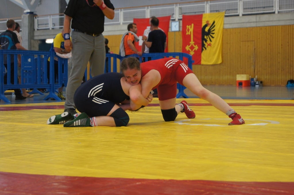 Julia Lötscher und Larissa Feyer traten beide in der Kategorie bis 53kg an. Durch das nordische System war eine Direktbegegnung der beiden Senslerinnen damit bereits sicher. Die Dramaturgie der ausgelosten Wettkampfreihenfolge führte dazu, dass dieses vereinsinterne Duell zum Schluss stattfinden würde und es, bei vier Teilnehmerinnen in diesem Gewicht, sicher um eine Medaille gehen würde. Zunächst traten beide gegen die erfahrenen Konkurrentinnen Marina Wisler von der RR Hergiswil und Vanessa Nussberger vom NRC Thalheim an. Die Bilanz dieser vier Kämpfe lässt sich ebenso kurz wie ernüchternd ziehen: Alle vier endeten mit einer Schulterniederlage, ohne einen eigenen Punktgewinn. Im Kampf um Bronze dann das direkte Aufeinandertreffen. Der Kampfverlauf brachte Punkte für beide Athletinnen, so dass sich das Geschehen bis zu einem 12:6 zu Gunsten von Julia entwickelte. Durch diese Punkteführung motiviert, setzte sie zu einem gezielten Angriff an, den sie in einen Schultersieg ummünzen konnte. Am Ende war es damit Larissa Feyer, die sich mit der Bronzemedaille belohnen konnte.