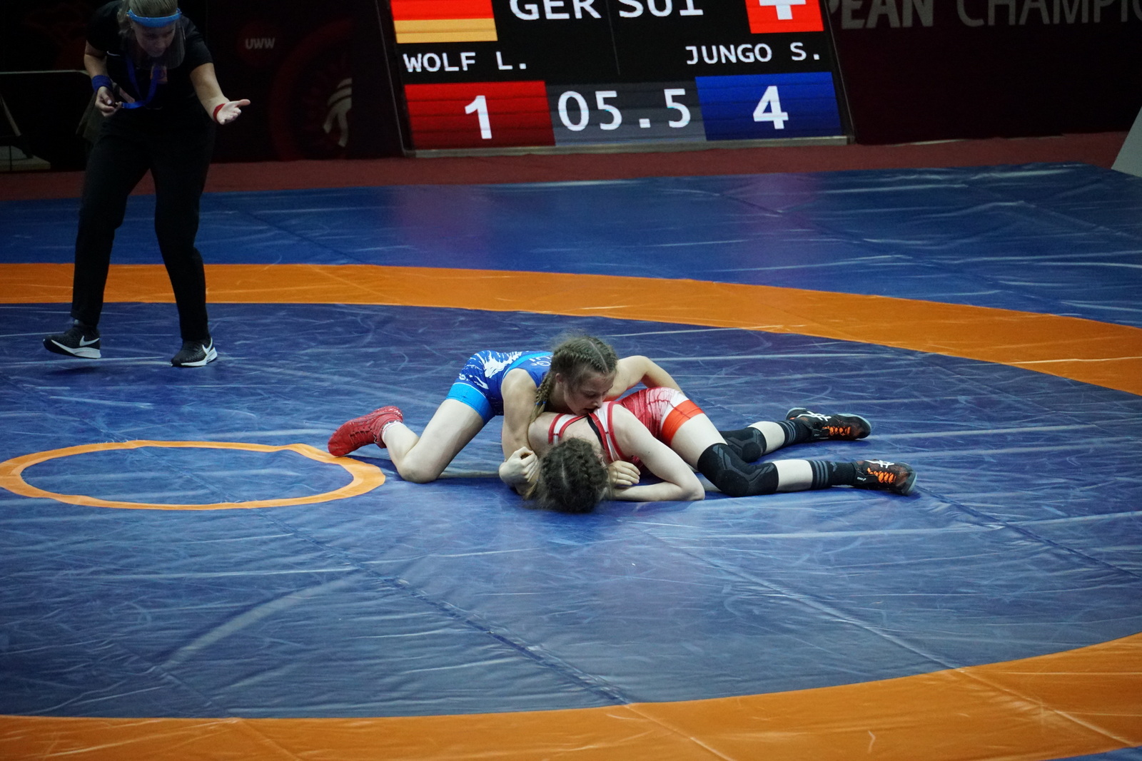 Nach Siegen gegen die Spanierin Maria Cazalla und Ruzann Mammadova aus Aserbeidschan qualifizierte sich Svenja letzte Woche an der Kadetten-EM in Samokov in der Kategorie bis 49 Kilogramm für den Halbfinal. In diesem unterlag die 16-jährige Senslerin der Türkin Sevin Akbas knapp mit 3:4 Punkten. «Als ich mal richtig im Kampf war und wusste, wie ich ringen soll, war die Zeit auch schon wieder um», hadert Svenja etwas. Im Duell um Bronze drehte sie dann gegen die Deutsche Leonie Wolf nach Startschwierigkeiten auf und setzte sich mit 6:1 Wertungspunkten durch. «Ich habe noch das Beste aus der Situation gemacht und Bronze geholt. Auch wenn mehr möglich gewesen wäre, bin ich sehr zufrieden mit der Medaille.