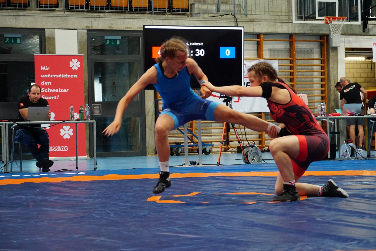 Der einzige sensler Ringer bei den Kadetten, Noah Schwaller, startete in der Gewichtsklasse Ü74 kg gut in das Turnier und gewann seinen ersten Kampf technisch überlegen. Im zweiten Kampf unterlag Noah denkbar knapp mit 3:4 Wertungspunkten dem späteren Sieger Daniel Loher aus Kriessern. Damit war der Druck im 3. Kampf schon hoch, um sich noch die Chance auf eine Medaille zu wahren, musste Noah gewinnen. In beeindruckender Art und Weise gelang dies und Noah punktete seinen Kontrahenten noch vor Ablauf der Zeit aus. Im Kampf um Bronze gegen den Einsiedler Jan Walker konnte Noah den Kampf über die volle Distanz, aber ohne eigenen Punktverlust, für sich entscheiden und sich somit am Abend die Bronzemedaille um den Hals hängen lassen.