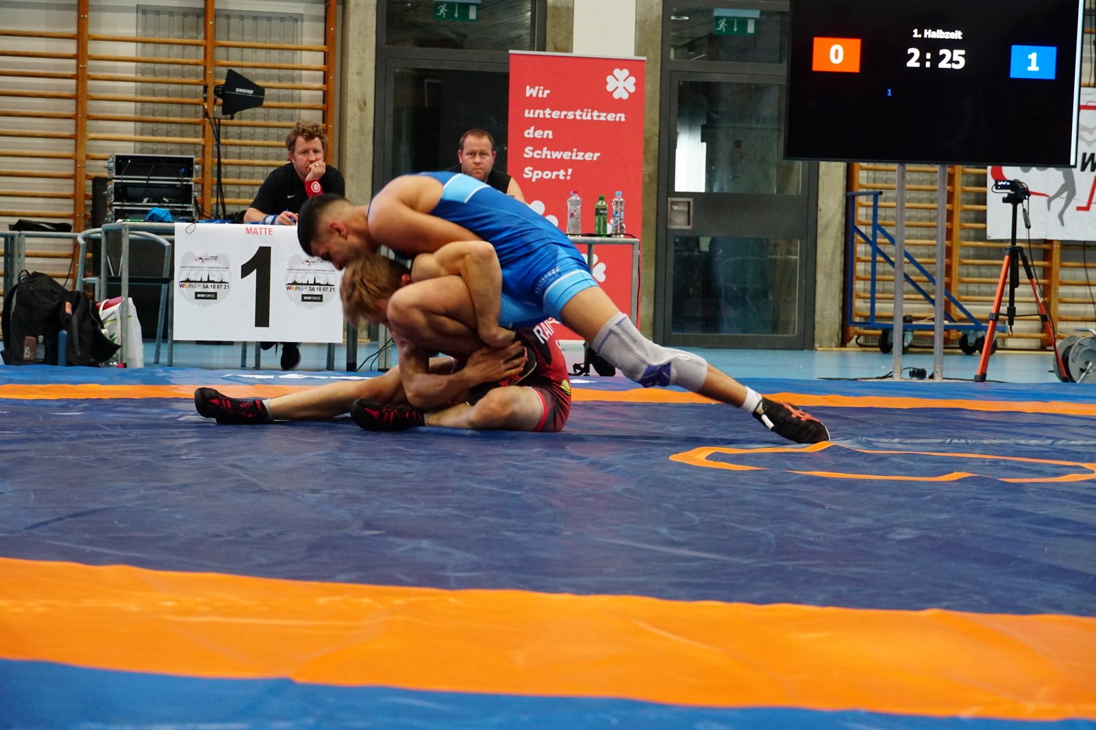 Der Greco Spezialist der RS Sense, Matthias Käser, liess es sich nicht nehmen, ebenfalls im Freistil sein Glück zu versuchen. Der konditionell starke Ringer rechnete sich doch das ein oder andere aus, auch wenn es ein Podiumsplatz schwierig zu erreichen schien. Dass er im ersten Kampf dann ausgerechnet gegen den Vizeeuropameister Sämi Scherrer traf, machte die Aufgabe nicht gerade einfacher. Mäthu versuchte im Kampf dagegen zu halten, doch der Freistilspezialist konnte immer wieder seine Beinangriffe erfolgreich beenden und so den Kampf für sich entscheiden. Im zweiten Kampf folgte der mit Dominik Streiff von der RR Tuggen ein Gegner auf Augenhöhe. In einem umkämpften Fight mit mehrmaligem Führungswechsel reichte es am Ende leider nur zu einem 3:4 und damit dem Aus. Doch dass die Ambitionen nicht zu hochgesteckt waren, zeigte das Schlusstableau, in dem Streiff auf dem Podium stand, also wäre mit etwas Losglück wohl doch mehr drin gewesen.