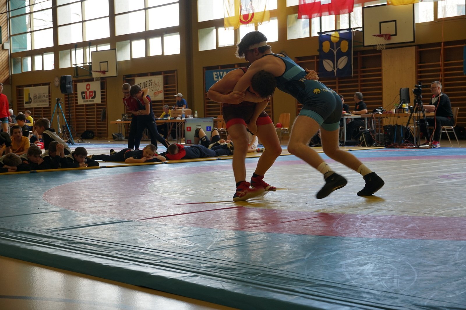 Einen langen Kampftag ergab die Wiegeliste für Noah. Da in der Gewichtsklasse 80kg nur 6 Teilnehmer antraten, war klar, dass durch das nordische System (jeder gegen jeden) 5 Kämpfe für ihn anstehen würden. Einen schweren Brocken gab es gleich zu Beginn: der Vorjahresmeister Sven Epp aus Schattdorf. Noah gelang kein guter Start und beim Versuch den frühen Rückstand aufzuholen, lief er in einen Hüfter, aus der er sich nicht mehr befreien konnte und die Schulterniederlage einstecken musste. Die nächsten beiden Kämpfe liefen deutlich besser. Zunächst konnte Noah einen ungefährdeten Sieg durch technische Überlegenheit einfahren, in der dritten Runde dann nach einem offenen Schlagabtausch den Match mit 14:10 für sich entscheiden. Somit bestand noch die Chance auf die Medaille. Im nächsten Kampf traf Noah auf seinen Nationalmannschaftskollegen aus Freiamt, Kimi Käppeli. Trotz der Niederlage, lieferte Noah hier seinen besten Kampf ab, auch wenn nicht alle seine Aktionen von Erfolg gekrönt waren. Somit war die letzte Runde der Kampf um die Bronzemedaille. Sein Kontrahent, Jan Walker aus Einsiedeln und er hatten bisher beide je zwei Siege und zwei Niederlagen auf ihrem Konto stehen. Letztes Jahr konnte Noah bei der Kadetten SM Jan noch besiegen, dieses Mal hatte der Einsiedler das bessere Ende auf seiner Seite. Nach dem frühen Rückstand, lief Noah erneut in einen Hüfter und landete auf den Schultern, ein Abbild des ersten Kampfes. Somit blieb am Ende der undankbare vierte Platz.