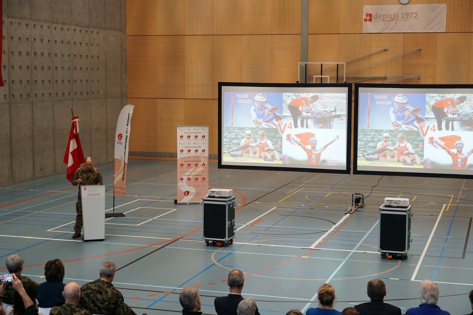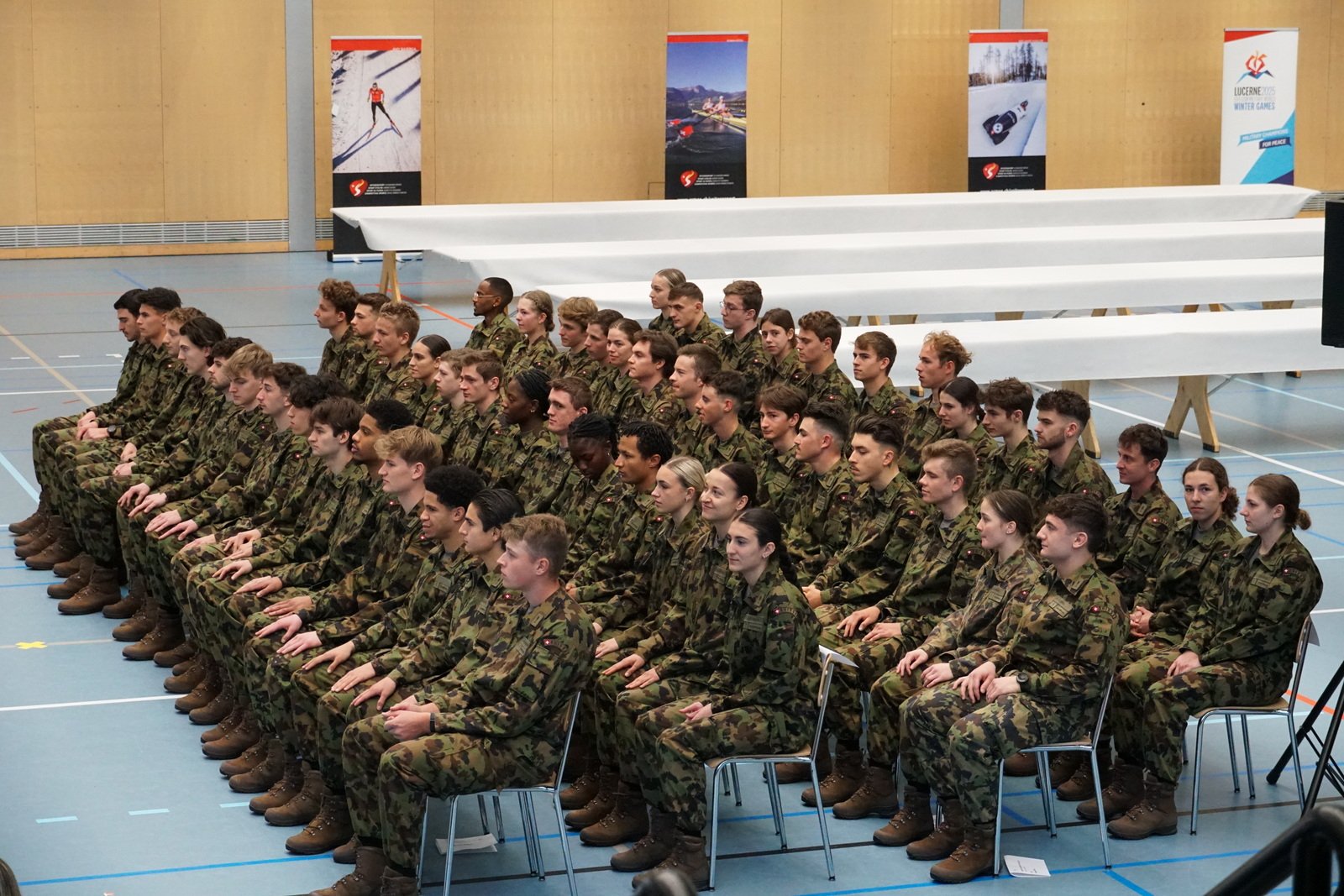 Die Rekruten wurden heute erfolgreich zu Soldaten befördert. Anschliessend gab es einen kleinen Einblick in die 18 verschiedenen Sportarten der 59 Sportsoldaten. Nun sind sie auf der Zielgeraden, am Montag startet Woche 14 von 18.