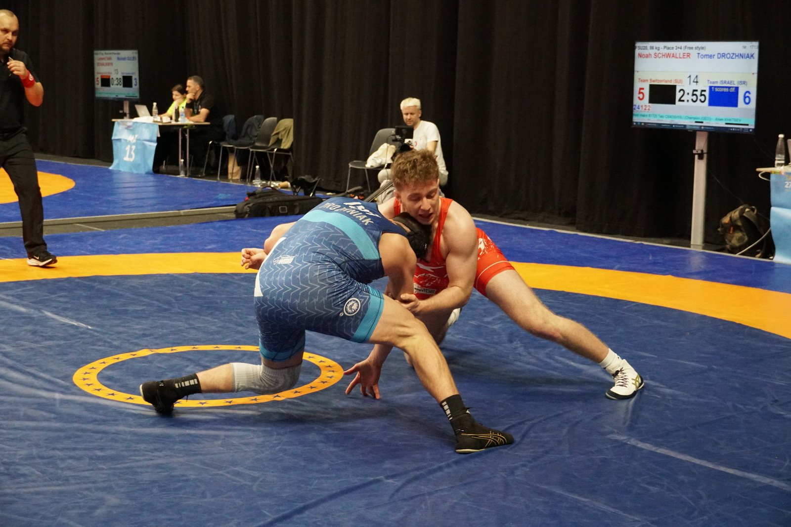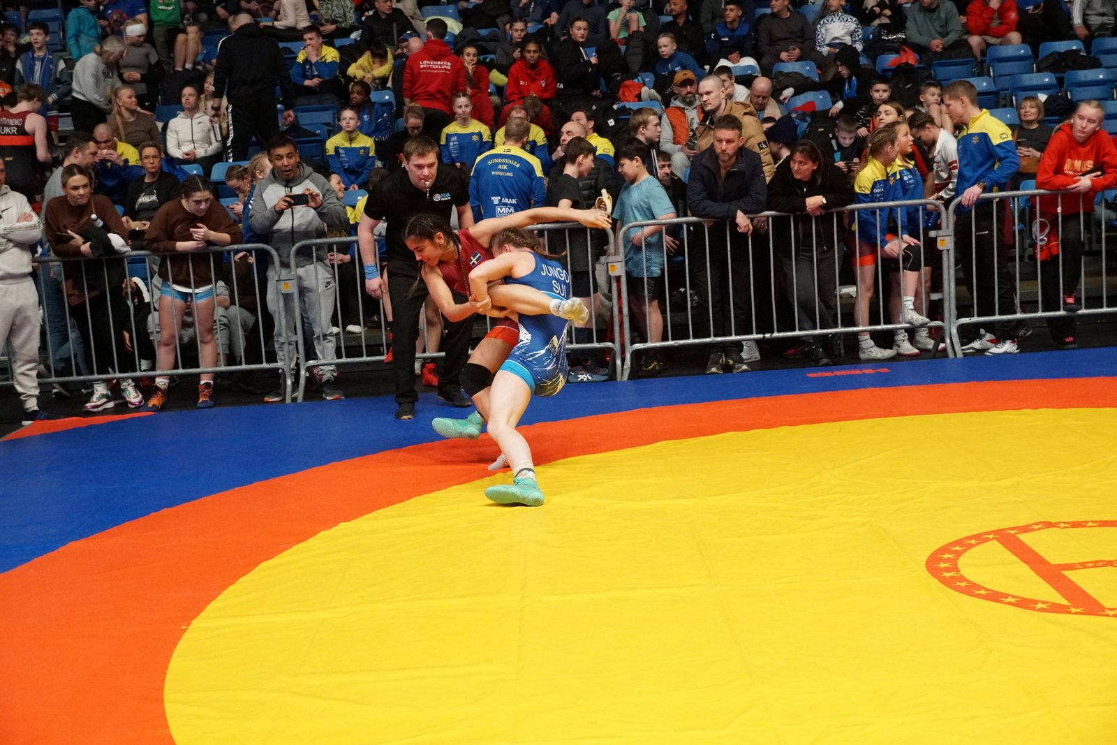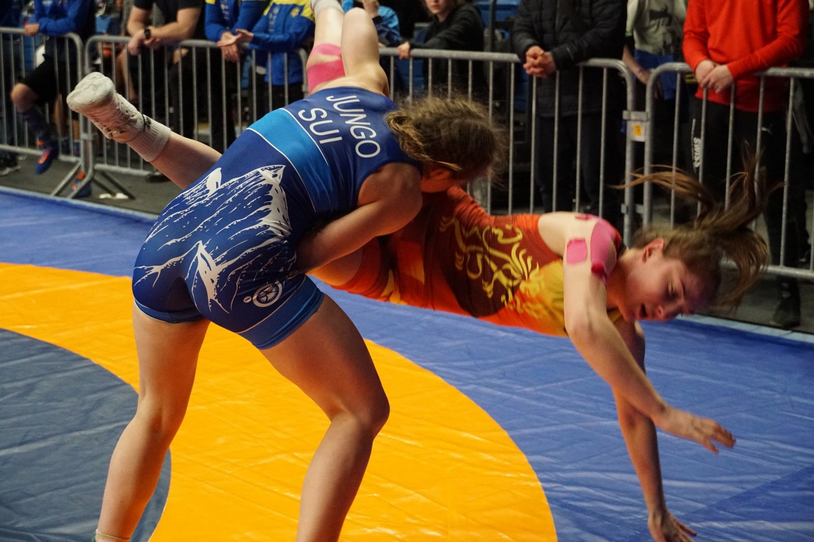 Svenja reiste mit den anderen Mädchen bereits ein Tag früher an, da sie am Freitagabend im Länderkampf Europa gegen USA mitmachen durften. Dieser Kampf konnte die Senslerin für Europa entscheiden und gewann mit 10:4 Schultersieg gegen Rianne Murpy, welche auch am nächsten Tag mit Svenja in der Gewichtsklasse bis 50kg am U20 Turnier teilnahm.