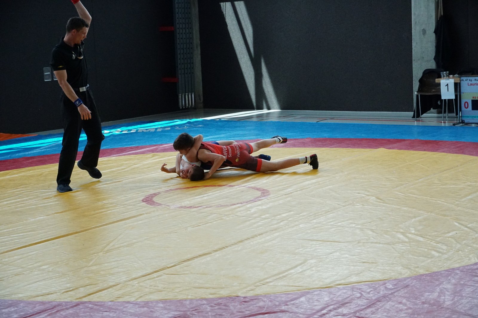 Laurin Caduff startete ebenfalls bei der Jugend A. Er rang in der Kategorie bis 47kg. Für ihn war es die erste Schweizermeisterschaft. Er musste dabei noch etwas Lehrgeld bezahlen und schied nach drei Kämpfen aus. Mit einem Sieg, durch technische Überlegenheit in der zweiten Runde, deutete er aber sein Potenzial an.