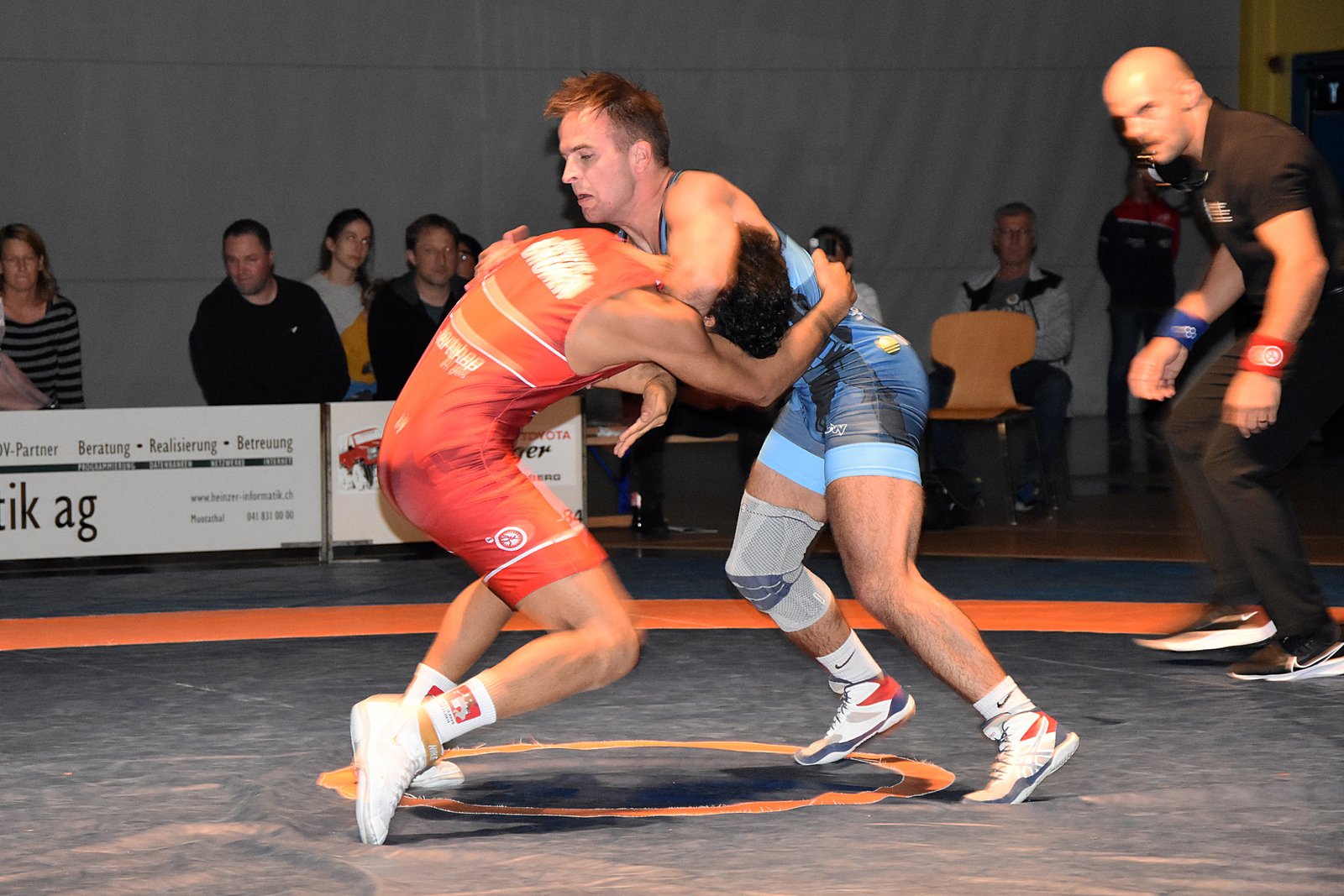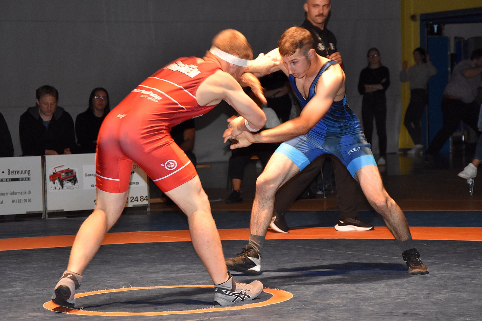 Bis 61 kg zeigte Dany Kälin in seinem zweiten Kampf nach überstandenem Kreuzbandriss eine starke Leistung. Gegen Nickzad Mansur blieb er abgeklärt und entschied den Kampf hauchdünn mit 6:3 Punkten für sich (2:1 Mannschaftspunkte).