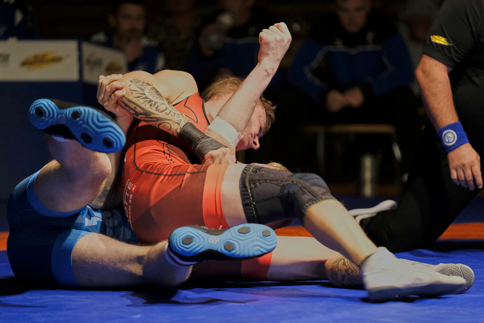 Nach der Pause ging es mit zwei weiteren Sensler Siegen weiter. Zunächst gewann Matthias Käser seinen Kampf bis 86 Freistil technisch überlegen. Er befand sich während des Kampfes stets im Vorwärtsdrang und vermochte auch die Beinangriffe seines Gegners immer abzuwehren. Im Bodenkampf punktete er zudem ebenfalls mittels Überroller und feierte so letztlich ungefährdet einen klaren Sieg.