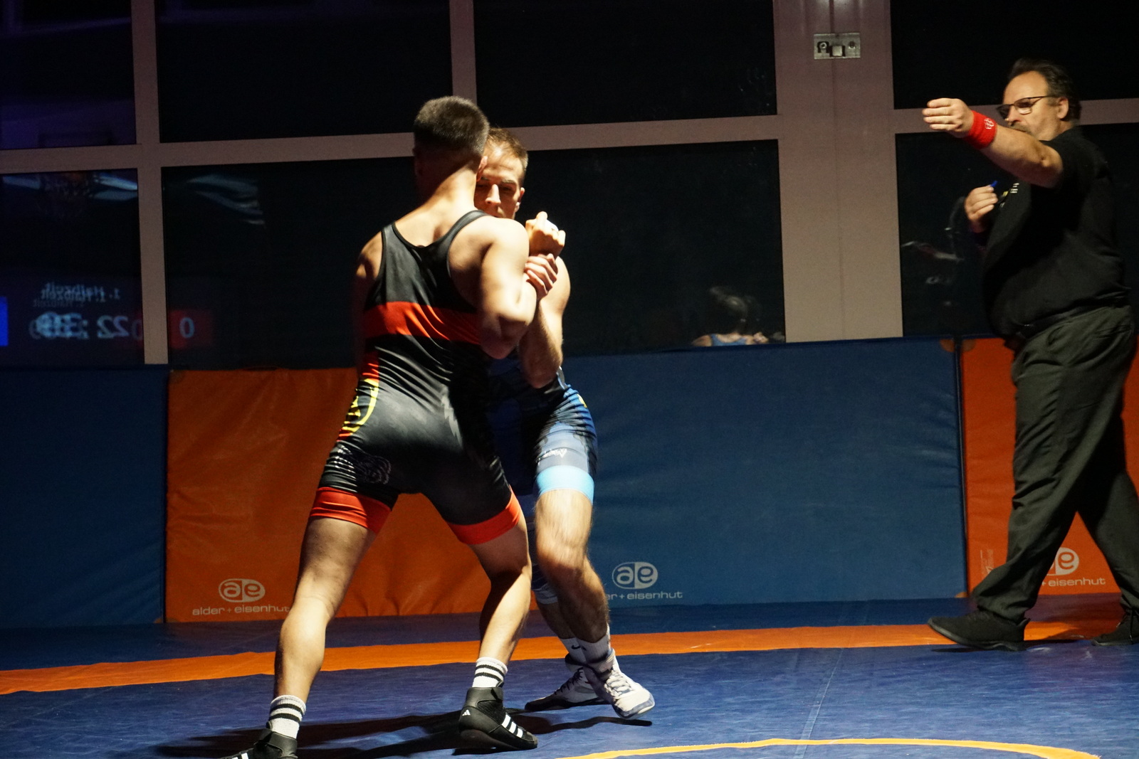 Die nächsten beiden Kämpfe entschieden die Sensler wieder für sich. Matthias Käser spielte im Duell bis 97 kg Greco seine konditionelle Stärke einmal mehr gnadenlos aus. Er hielt das Tempo konstant hoch und drängte seinen Gegner in die Defensive. Dies brachte ihn einen klaren Vorsprung ein. Sein Gegner konnte sich mit fortlaufender Kampfdauer nur noch mit unerlaubten Mittel verteidigen, was ihn eine Niederlage durch Disqualifikation einbrachte. Eine weitere sehr starke Leistung des Sensler Teamleaders.