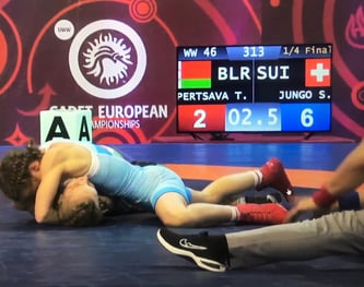 Als Trainer der Swiss Wrestling Federation, befindet sich Pascal Jungo derzeit im Spanischen Pontevedra. Dabei begleitete er seinen Schützling Tobias Portmann von den RC Willisau Lions bei seiner sensationellen Leistung bis in den kleinen Final um Bronze. Zur Kampfmitte (im Bild) waren noch alle Chancen auf die Bronzemedaille vorhanden. Am Ende wurde es jedoch eine 1:6 Niederlage und der respektable fünfte Rang.